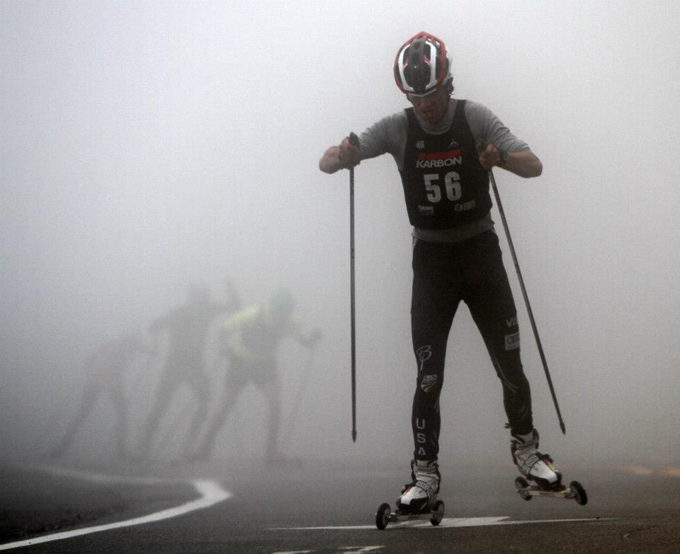 One of the staples of the Lake Placid camp is the climb to the Castle – a 5 mile rollerski race up the Whiteface Mountain auto road. From the start, the road climbs non-stop, with no flats or downhills and virtually no good places to recover.