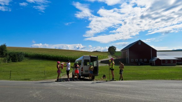 The girls taking a quick stop to refill water. Gus supported our ski and carried our extra water and food in the van.