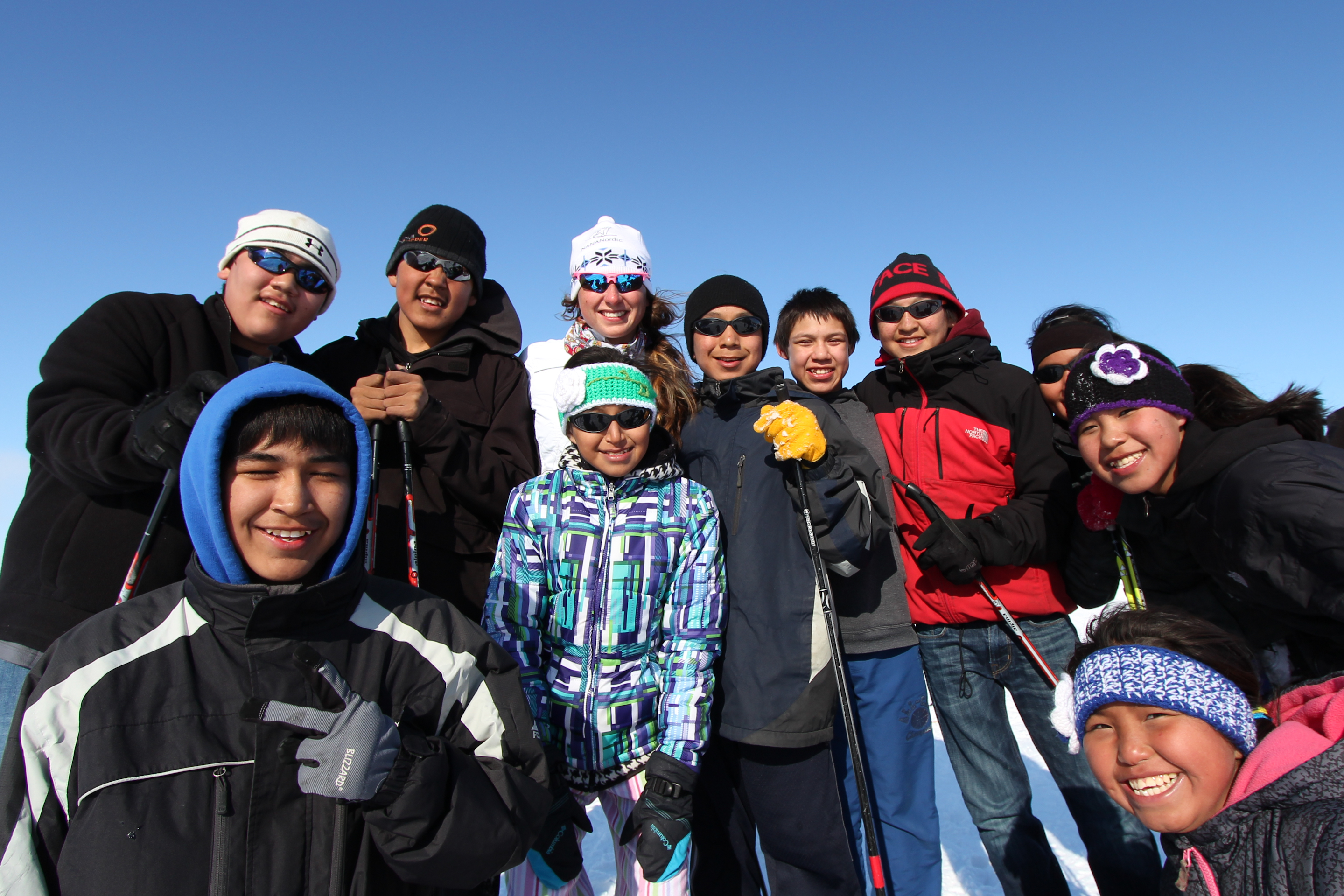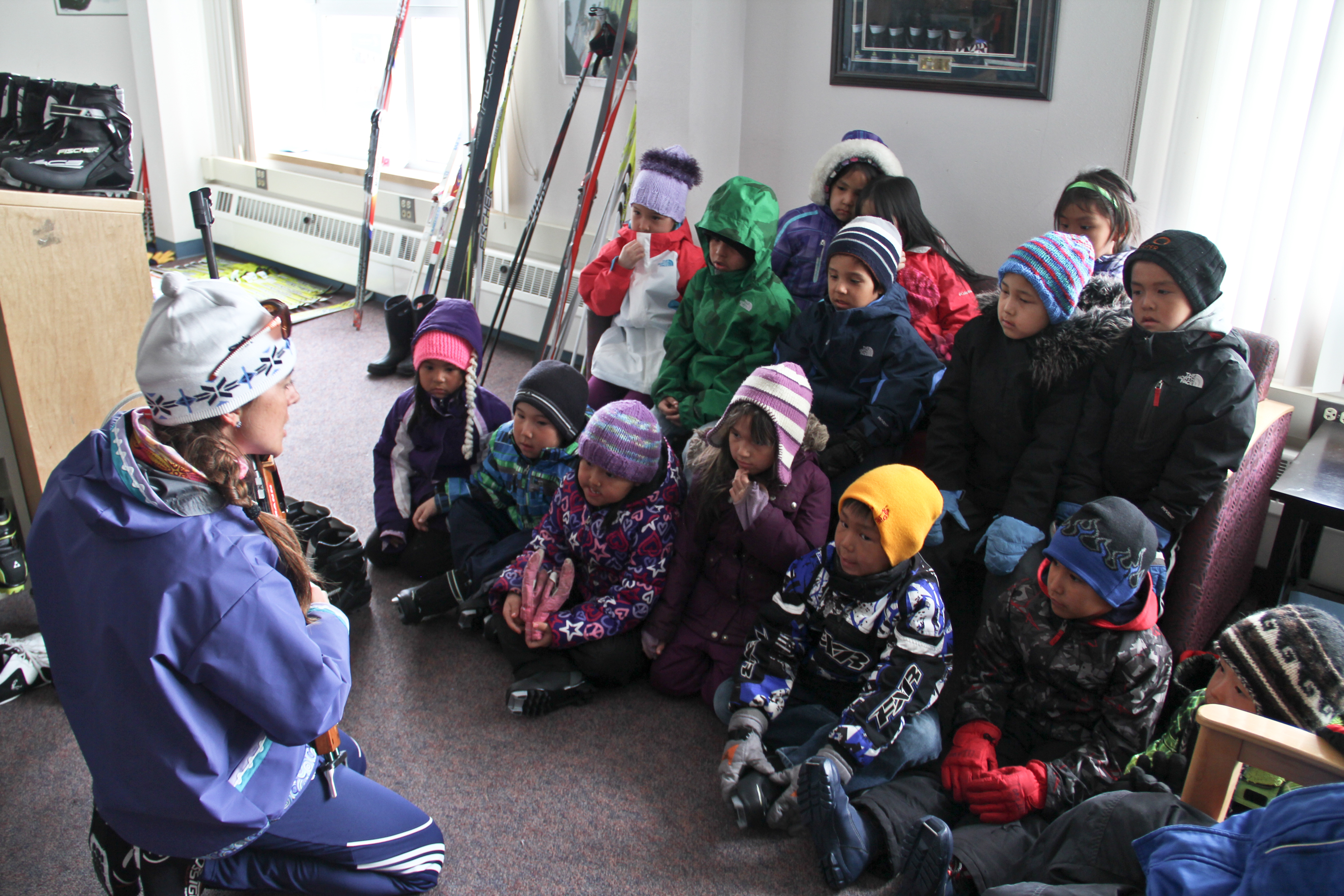 The kids were SUPER pumped to ski with us! We ran ski lessons during PE and then held two additional sessions after school. There were about 130 kids in grades K-12 at the school, and well over 100 showed up again every day for the after school sessions to get a second ski in! We had 50 sets of gear, and for the after school sessions we ran out every time.