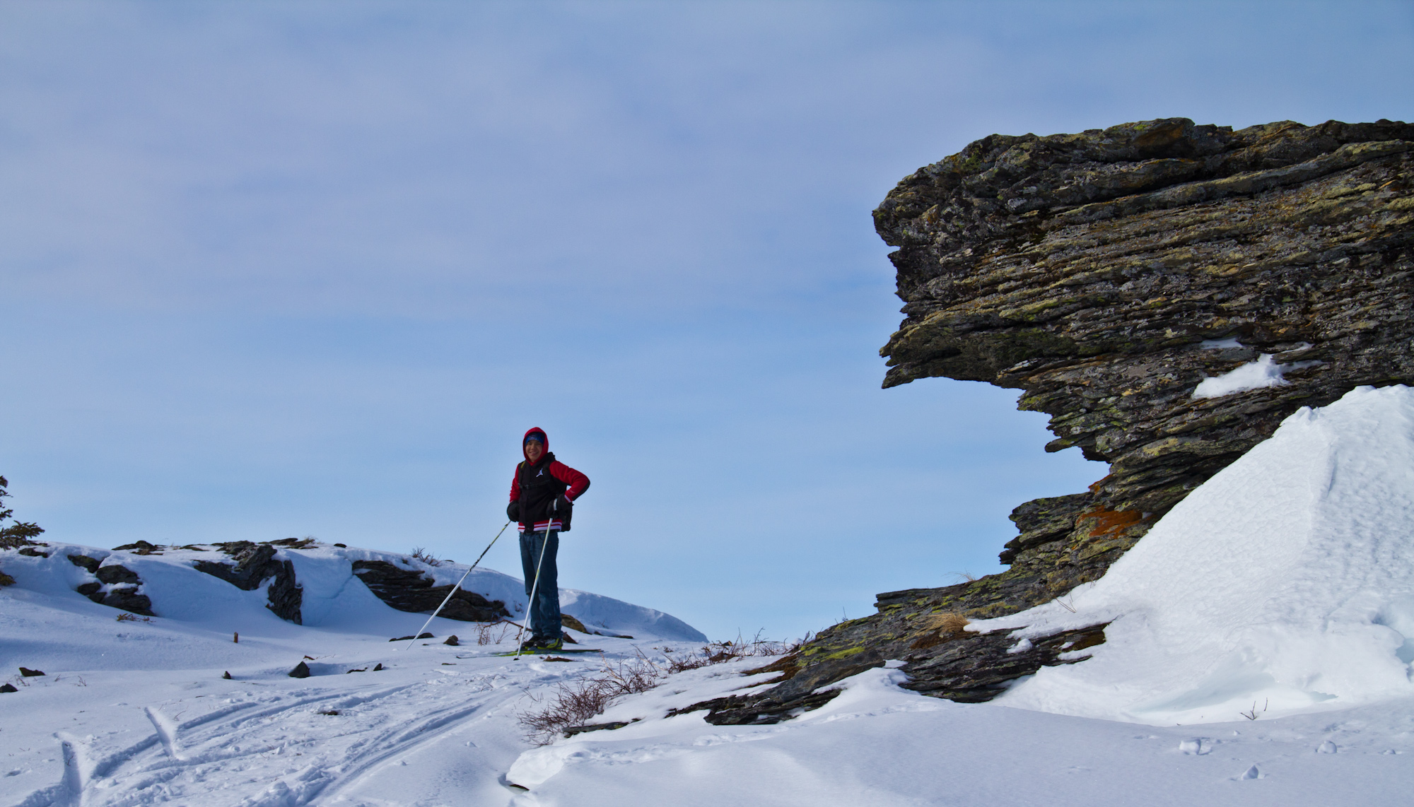 We followed a snow machine (“snow-go”) track out of town. There was almost three feet of snow, making for tough skating.
